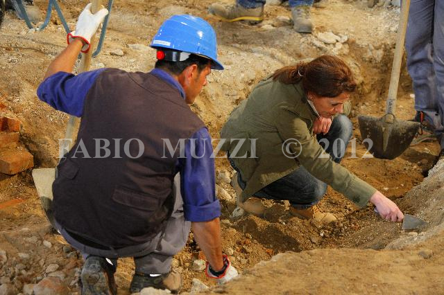 | ITALY, Florence : employees work on the site for the excavation works to research of the rest of Mona Lisa Del Giocondo, named Monna Lisa and pictured into the famous paint if Leonoardo da Vinci, inside ex Saint Orsola monastery in Florence on May 11, 2009. AFP PHOTO / FABIO MUZZI | IMAGE_4416.JPG | 11/05/11 9.57 | |