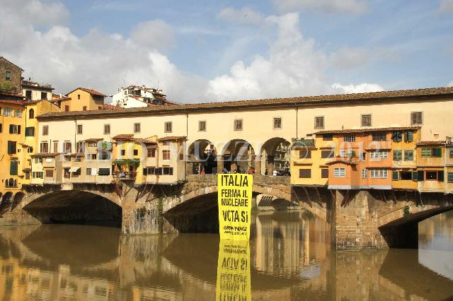 | ITALY, Florence : an banner writing " Italy stop nuclear project " is showed by Greenpeace activists on Ponte Vecchio in Florence on June 10, 2011 (AFP PHOTO / FABIO MUZZI) | IMAGE_4417.JPG | 10/06/11 9.09 | |