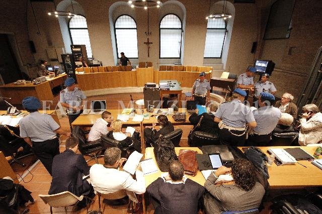 | ITALY, Perugia : a view of the hall of the courthouse before the start of a session of his appeal trial in Perugia's courthouse on September 05, 2011. An Italian court holds today a new hearing in the appeal trial of US student Amanda Knox and her former boyfriend Raffaele Sollecito against their conviction for the murder of Knox' British roommate. AFP PHOTO / FABIO MUZZI | IMAGE_4464.JPG | 05/09/11 8.37 | |