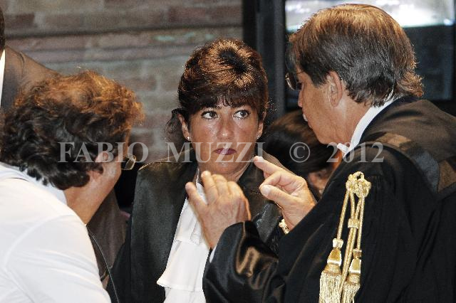 | ITALY, Perugia : from L, Meredith Kerchel's lawer Francesco Maresca, Public Prosecutor Manuela Comodi and Giancarlo Costagliola speak in court before the start of a session of his appeal trial in Perugia's courthouse on September 06, 2011. An Italian court holds today a new hearing in the appeal trial of US student Amanda Knox and her former boyfriend Raffaele Sollecito against their conviction for the murder of Knox' British roommate. AFP PHOTO / FABIO MUZZI | IMAGE_4479.JPG | 06/09/11 8.32 | |
