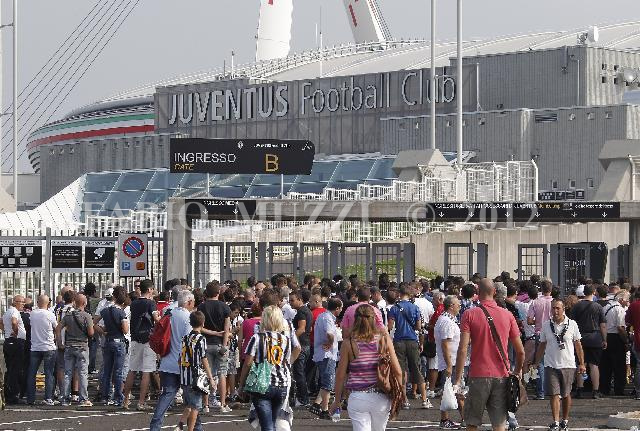 | ITALY, Turin : supporters wait to enter inside the new Juventus' satdium Delle Alpi prior their serie A football match at Delle Alpi stadium in Turin on September 11, 2011. AFP PHOTO / FABIO MUZZI | IMAGE_4480.JPG | 11/09/11 10.03 | |