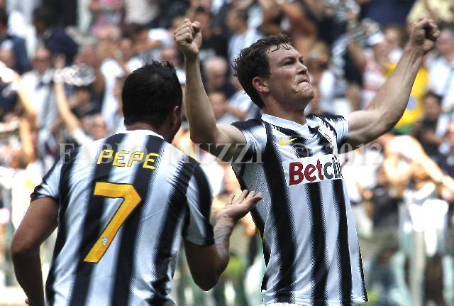 | ITALY, Turin : Juventus' Stephan Lichtsteiner of Swiss (R) celebratesafter striked against Parma's goalkeeper Antonio Mirante during their serie A football match at Delle Alpi stadium in Turin on September 11, 2011. AFP PHOTO / FABIO MUZZI | IMAGE_4482.JPG | 11/09/11 12.49 | |