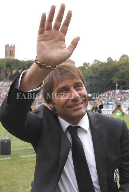 | ITALY, Siena : Juventus' coach Antonio Conte arrives on the pitch qnd cheers his supporters pior of their serie A football match at Artemio Franchi stadium in Siena on September 18, 2011. AFP PHOTO / FABIO MUZZI | IMAGE_4487.JPG | 18/09/11 14.01 | |