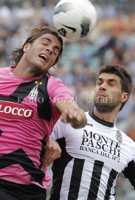 | ITALY, Siena : Juventus' Alessandro Matri (L) in action against Siena's Luca Rossettini during their serie A football match at Artemio Franchi stadium in Siena on September 18, 2011. AFP PHOTO / FABIO MUZZI | IMAGE_4488.JPG | 18/09/11 14.12 | |