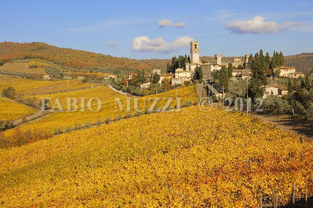 | ITALY, Passignano : a view of Passignano Abbey in Chianti Classico, south of Florence province, where vineyards and hills are covered of yellow and red colors as traditional autumn season on November 02, 2011 (AFP PHOTO / FABIO MUZZI) | IMAGE_4522.JPG | 02/11/11 16.17 | |