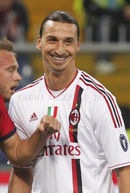 | ITALY, Genova : Mian's Zlatan Ibrahimovic of Sweden smiles during their serie A football match at Luigi Ferraris stadium in Genova on December 02, 2011. AFP PHOTO / FABIO MUZZI | IMAGE_4548.JPG | 02/12/11 21.28 | |