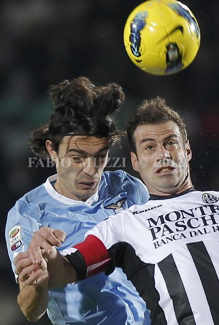 | ITALY, Siena : Lazio's Guseppe Biava (L) and Siena's Emanuele Calaio' vie for the ball during their serie A football match at Artemio Franchi stadium in Siena on January 07, 2012. AFP PHOTO / FABIO MUZZI | IMAGE_4560.JPG | 07/01/12 18.30 | |