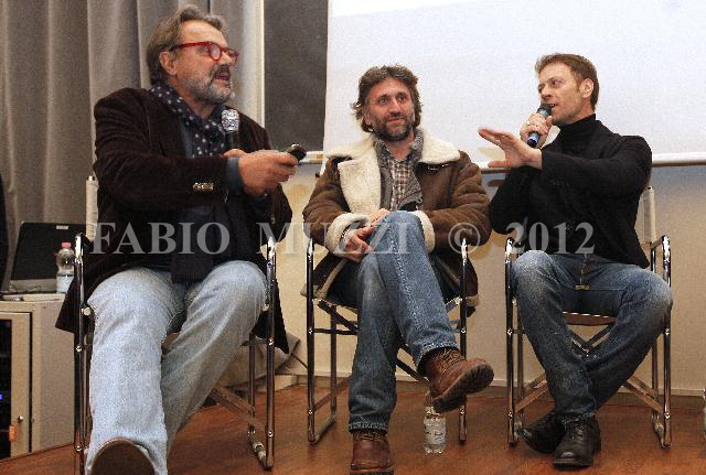 | ITALY, Florence : from R, porno actor Rocco Siffredi, Simone Remi and Oliviero Toscani speaks during the press conference of the new 2012 calendar made by Oliviero Toscani. The new 2012 calendar is presented today in Florence and realized for the Consortium Vera Pelle Italiana company in Florence on January 12, 2012. AFP PHOTO / FABIO MUZZI | IMAGE_4569.JPG | 12/01/12 19.18 | |