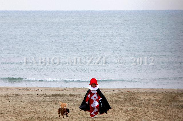 | ITALY, Viareggio : a Viareggio' s Burlamacco official mask is pictured of the beach of the town prior the traditiona parade in Viareggio on February 05, 2012 (AFP PHOTO / FABIO MUZZI) | IMAGE_4595.JPG | 05/02/12 15.21 | |
