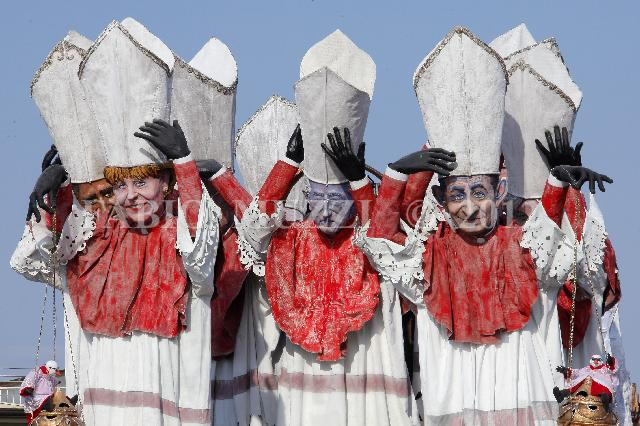 | ITALY, Viareggio : from left, giant carnival mask raffiguring U.S president Barack Obama, german prime minister Angela Merkel, italian prime minister Mario Monti and french president Nikolas Sarkozy parades during traditional carnival in Viareggio on February 05, 2012 (AFP PHOTO / FABIO MUZZI) | IMAGE_4603.JPG | 05/02/12 12.27 | |