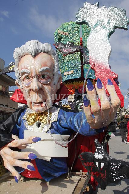 | ITALY, Viareggio : giant carnival mask called "Il vampiro" raffiguring italian prime minister Mario Monti parades during the traditional carnival in Viareggio on February 05, 2012 (AFP PHOTO / FABIO MUZZI) | IMAGE_4605.JPG | 05/02/12 13.19 | |