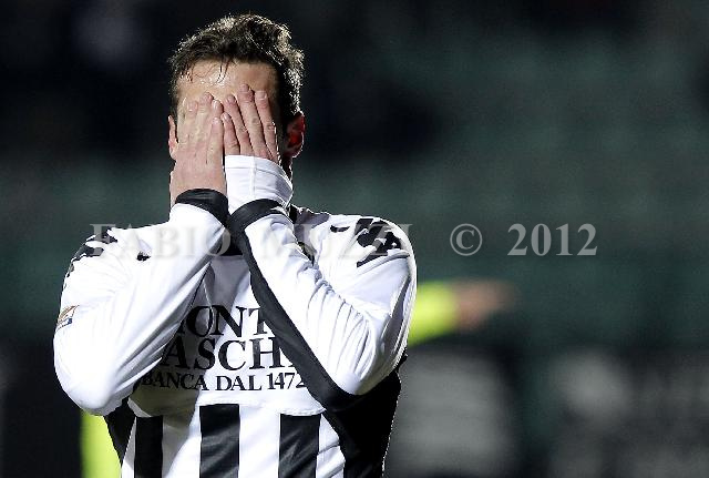 | ITALY, Siena : Siena's Emanuele Calaio' reacts after failed to score during their serie A football match at Artemio Franchi stadium in Siena on February 13, 2012. AFP PHOTO / FABIO MUZZI | IMAGE_4616.JPG | 13/02/12 21.05 | |