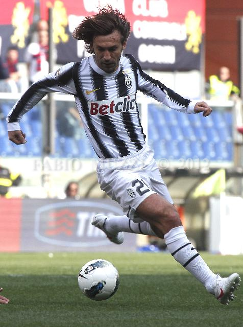 | ITALY, Genova : Juentus' Andrea Pirlo in action during their serie A football match at Luigi Ferraris stadium in Genova on March, 2012. AFP PHOTO / FABIO MUZZI | IMAGE_4624.JPG | 11/03/12 15.23 | |