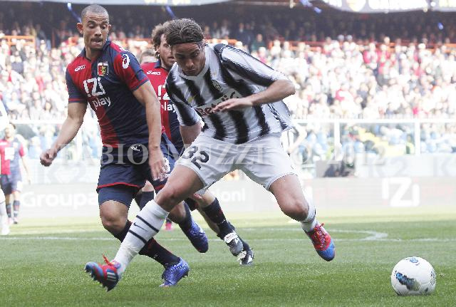 | ITALY, Genova : Juventus' Alessandro Matri (R) in action against Genoa's Roger De Carvalho of Brasil during their serie A football match at Luigi Ferraris stadium in Genova on March, 2012. AFP PHOTO / FABIO MUZZI | IMAGE_4625.JPG | 11/03/12 15.20 | |
