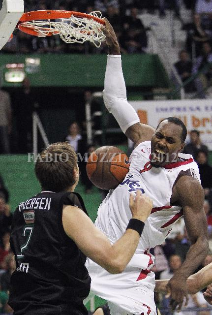 | ITALY, Siena : Olympiacos' Piraeus Richard Dorsey (R) scores against Montepaschis' Siena David Andersen during their Euroleague basketball Playoff match, Game 1, Groupe B, on March 21, 2012 in Siena. (AFP PHOTO/ FABIO MUZZI) | IMAGE_4682.JPG | 23/03/12 21.22 | |