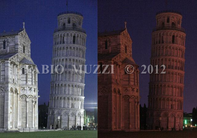 | ITALY, Pisa : A combo view of the leaning tower of Pisa ( left prior the lights off ) for an Earth Hour campaign in Pisa on March 31, 2012. World-famous landmarks including the Pyramids, the Eiffel, the Empire State Buildings will be dark Saturday as million turn out the ligthts for " Earth Hour", a rolling grassroots movement aimed at fighting climate change. AFP PHOTO / FABIO MUZZI | IMAGE_4695.JPG | 31/03/12 20.16 | |