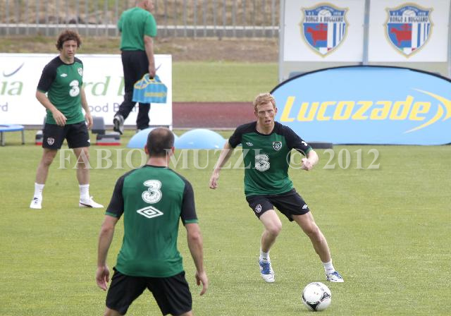 | ITALY, Borgo a Buggiano : Republic of Ireland's player Paul Green (C) runs the ball during a training session at Benedetti Stadium of Borgo a Buggiano, in Pistoia, on May 28, 2012. AFP PHOTO/ FABIO MUZZI | IMAGE_4717.JPG | 01/06/12 10.59 | |