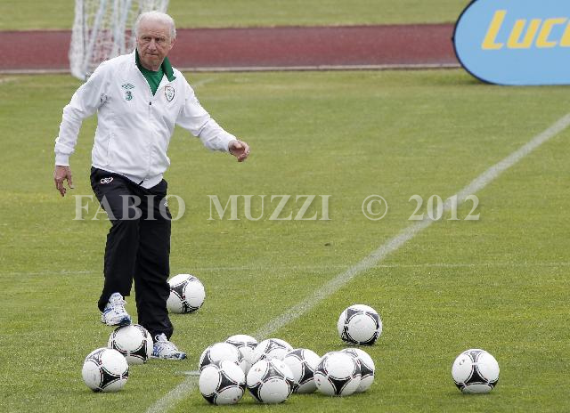 | ITALY, Borgo a Buggiano : Republic of Ireland's coach team Giovanni Trapattoni during a training session at Benedetti Stadium of Borgo a Buggiano, in Pistoia, on May 28, 2012. AFP PHOTO/ FABIO MUZZI | IMAGE_4719.JPG | 01/06/12 10.55 | |