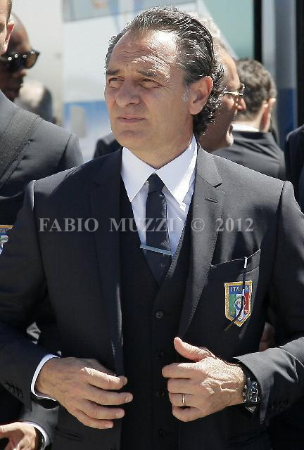 | ITALY, Pisa : Italy' s national football team coach Cesare Prandelli while boarding on Alitalia aircraft to fly to Cracovia, Poland, for next Euro 2012 Tournament on Poland and Ukraina, in Pisa' s airport on May 05, 2012 (AFP / STRINGER) | IMAGE_4742.JPG | 05/06/12 15.15 | |