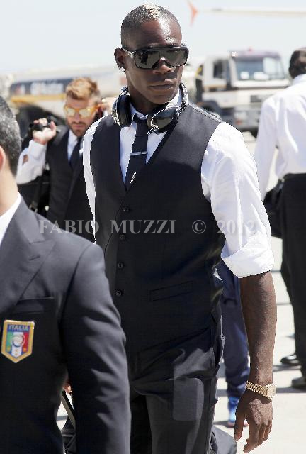 | ITALY, Pisa : Italy' s national football player Mario Balotelli while boarding on Alitalia aircraft to fly to Cracovia, Poland, for next Euro 2012 Tournament on Poland and Ukraina, in Pisa' s airport on May 05, 2012 (AFP / STRINGER) | IMAGE_4743.JPG | 05/06/12 15.16 | |