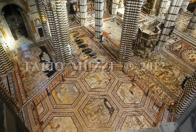 | ITALY, Siena : view of part of mosaic on the pavement of the Saint Maria Assunta Dome in Siena, on August 30, 2012 (AFP PHOTO / FABIO MUZZI) | IMAGE_4814.JPG | 30/08/12 10.17 | |