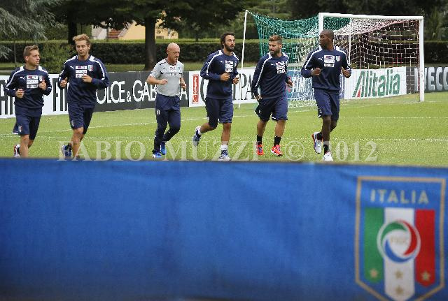 | ITALY, COVERCIANO : Italy's national football player run during a training session at the Italian Football Federation technical center in Coverciano, near Florence, on September 3, 2012. Italy will play Bulgaria in a World Cup 2014 qualification match on September 7 in Sofia. AFP PHOTO / FABIO MUZZI | IMAGE_4829.JPG | 03/09/12 17.52 | |