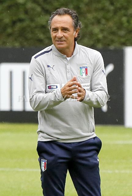 | ITALY, COVERCIANO : Italy's national football coach team Cesare Prandelli reacts during the training session at the Italian Football Federation technical center in Coverciano, near Florence, on September 3, 2012. Italy will play Bulgaria in a World Cup 2014 qualification match on September 7 in Sofia. AFP PHOTO / FABIO MUZZI | IMAGE_4830.JPG | 03/09/12 17.47 | |