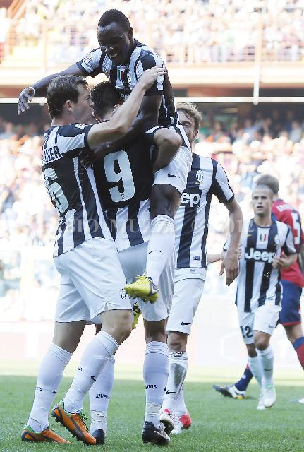 | ITALY, Genova : Juventus' Kwadwo Asamoah of Ghana (R) celebrates together teammates after scored against Genoa during their serie A football match at Luigi Ferraris stadium in Genova on September 16, 2012. AFP PHOTO / FABIO MUZZI | IMAGE_4833.JPG | 16/09/12 16.38 | |