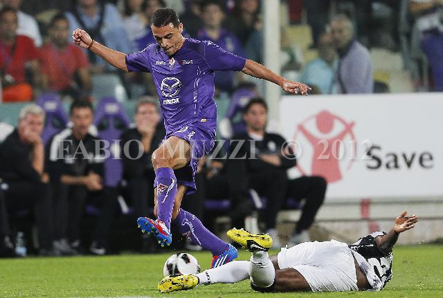 | ITALY, Florence : Fiorentina's Orestes Souza Romulo of Brazil (L) in action is tackled by Juventus' Kwadwo Asamoah of Ghana during their seria A soccer match at Artemio Franchi stadium in Florence, on September 25, 2012. (AFP PHOTO / FABIO MUZZI) | IMAGE_4848.JPG | 25/09/12 21.18 | |