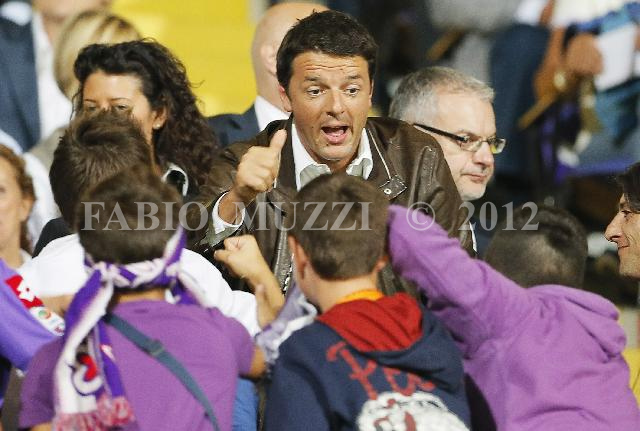 | ITALY, Florence : Florence's Mayor and Fiorentina suppoerter Matteo Renzi cheers with boys prior the seria A soccer match at Artemio Franchi stadium in Florence, on September 25, 2012. (AFP PHOTO / FABIO MUZZI) | IMAGE_4851.JPG | 25/09/12 20.41 | |
