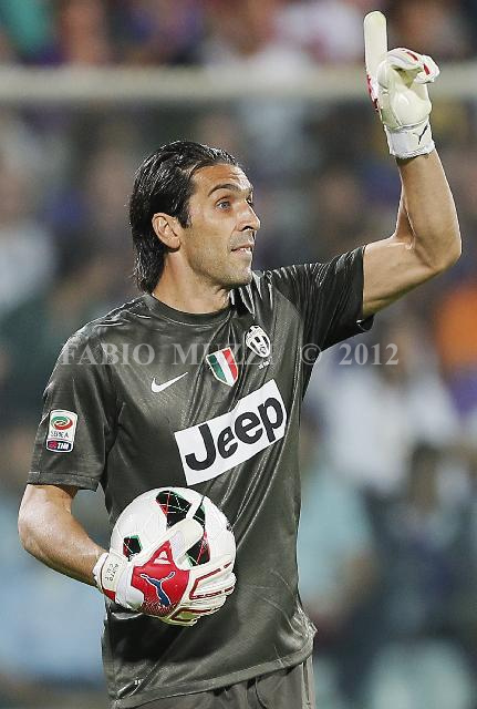 | ITALY, Florence : Juventus' Gianluigi Buffon gestures during their seria A soccer match at Artemio Franchi stadium in Florence, on September 25, 2012. (AFP PHOTO / FABIO MUZZI) | IMAGE_4866.JPG | 25/09/12 20.58 | |