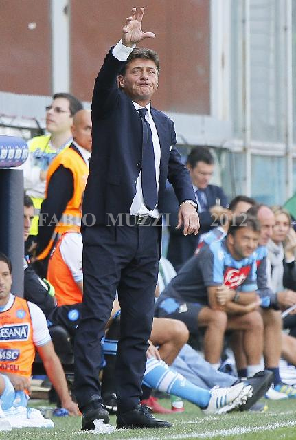 | ITALY, Genova : Napoli's coach team Walter Mazzarri gestures during their serie A football match at Luigi Ferraris stadium in Genova on September 30, 2012. AFP PHOTO / FABIO MUZZI | IMAGE_4881.JPG | 30/09/12 15.29 | |