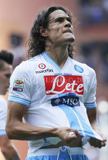 | ITALY, Genova : Napoli's Edison Cavani celebrates after kick his penalty and score 1-0 aga inst Sampdoria during their serie A football match at Luigi Ferraris stadium in Genova on September 30, 2012. AFP PHOTO / FABIO MUZZI | IMAGE_4887.JPG | 30/09/12 16.22 | |