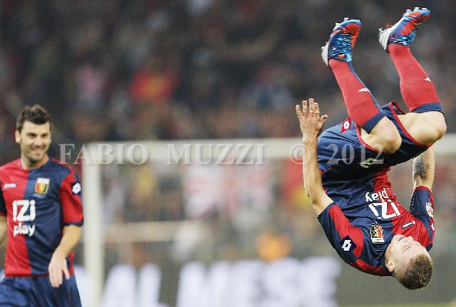 | ITALY, Genova : Genoa's Juraj Fucka of Slovacchia (R) celebrates after scored against AS Roma 1-0 during their serie A football match at Luigi Ferraris stadium in Genova on October 21, 2012. AFP PHOTO / FABIO MUZZI | IMAGE_4919.JPG | 21/10/12 20.50 | |