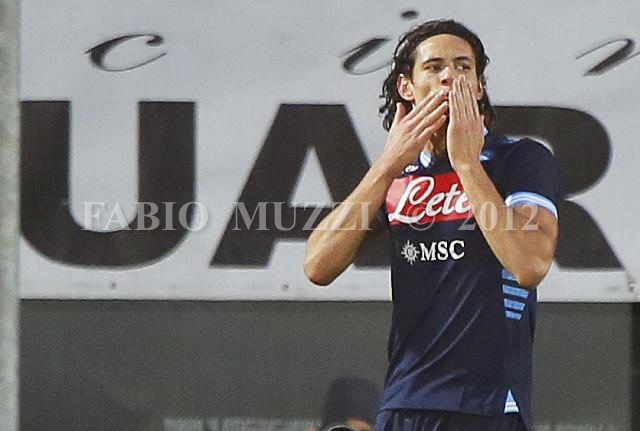 | ITALY, Siena : Napoli's Edinson Calvani of Uruguay cheers after scored 2-0 against Siena during their serie A football match at Artemio Franchi stadium in Siena on December 22, 2012. AFP PHOTO / FABIO MUZZI | IMAGE_4957.JPG | 22/12/12 17.44 | |