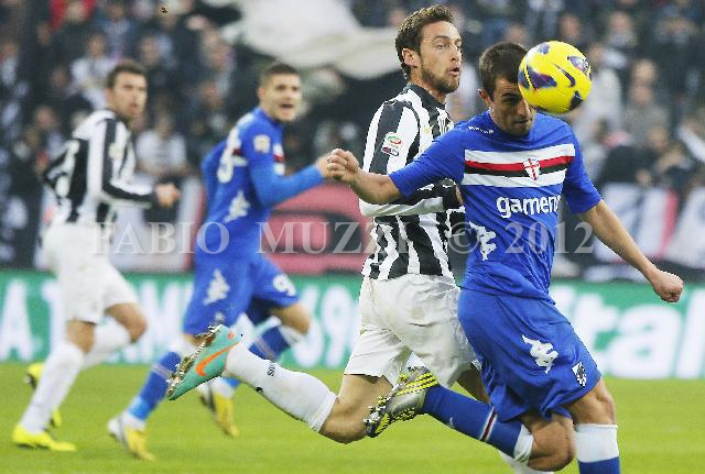 | ITALY, Turin : Sampdoria's Nenad Krstcic of Serbia (R) vies against Juventus' Claudio Marchisio during their serie A football match at the "Juventus Stadium" in Turin on January 06, 2013. AFP PHOTO / FABIO MUZZI | IMAGE_4965.JPG | 06/01/13 17.13 | |