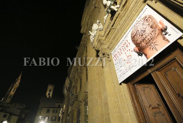 | ITALY, Florence : Italian Photographer Oliviero Toscani presents his new 2013 calendar in Florence on January 10, 2013. Shock Photographer Oliviero Toscani, best known for his provocative advertising campaigne for Benetton, launched today a new publicity calendar made-up entirely with tattoo people and realized for the Consortium Vera Pelle Italiana company. AFP PHOTO / FABIO MUZZI | IMAGE_4977.JPG | 10/01/13 18.58 | |